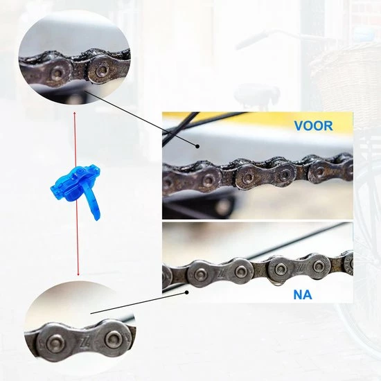 Als je je fietsketting niet schoonmaakt tast dat de ketting aan, waardoor het op lange termijn de levensduur van je ketting vermindert. Ook is het dure onderhoud niet meer nodig. De fietsketting reiniger heeft drie roterende borsteltjes om de ketting grondig schoon te maken zonder je kleding te vervuilen en je handen te beschadigen.