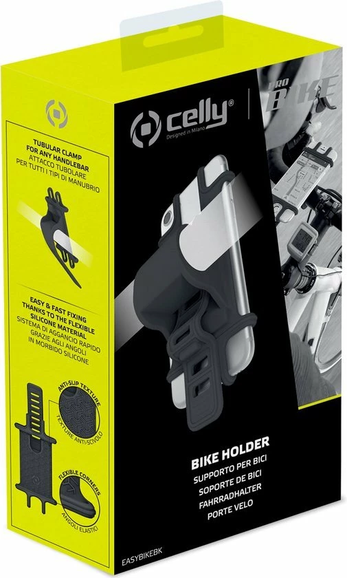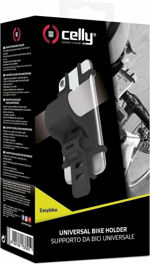 Celly Bike Holder Universal Black. In deze flexibele, silicone fietshouder van Celly past elke smartphone precies. Het bevestigingssysteem is geschikt voor elk type stuur en eenvoudig te bevestigen. Geschikt voor dagelijks gebruik en voor diverse sport activiteiten.