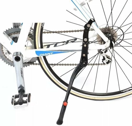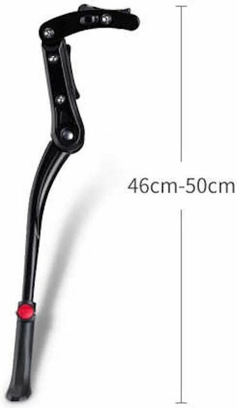 Deze fietsstandaard is doormiddel van de rode knop in lengte verstelbaar van 46 tot 50 Cm.