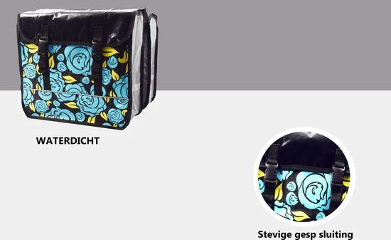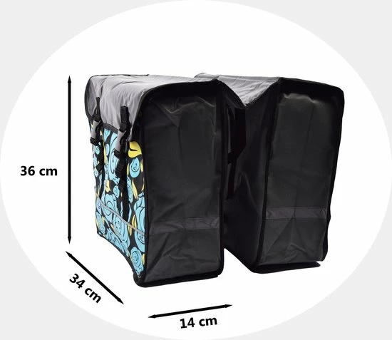 De tassen zijn voorzien van reflectiebanden om beter op te vallen in het verkeer. De dubbele fietstas kan eenvoudig aan de bagagedrager worden bevestigd met de klittenbandsluiting. Tevens kan hij op elke fiets met bagage drager.