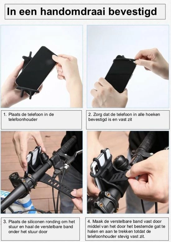 Door het gebruik van duurzaam zacht en stevig siliconen materiaal, is de telefoonhouder zeer flexibel en erg makkelijk te monteren op je fiets.