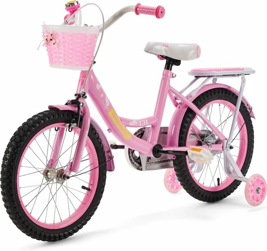 De fiets wordt met roze zijwieltjes geleverd en is daarom ook perfect geschikt voor kinderen die nog wat ondersteuning kunnen gebruiken.