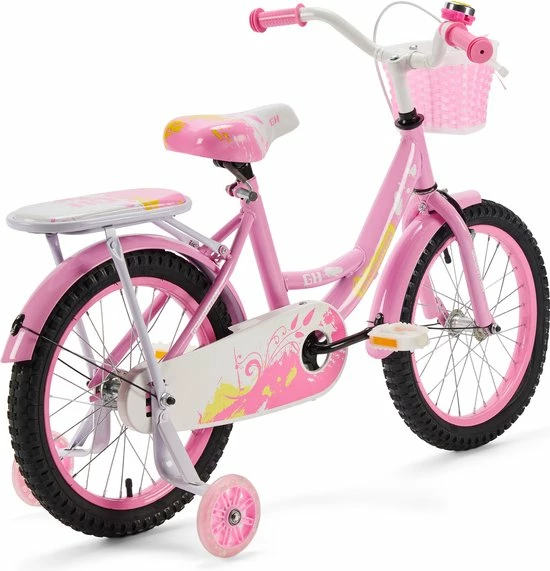 De vele roze onderdelen maken de Generation GH kinderfiets 16 inch een echte eyecatcher. Niet alleen de bel op het stuur en de handvatten zijn roze van kleur, ook de spatborden, velgen en het handige mandje aan het stuur zijn roze gekleurd.