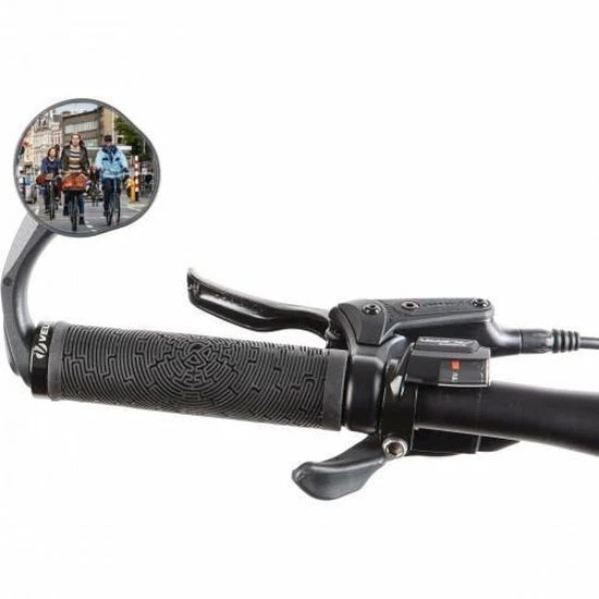 Met deze stevige stuurspiegel krijg je direct een goed beeld van het verkeer achter je. De spiegel bevestig je eenvoudig aan het einde van je handvatten, bekend als de bar-ends. Hij is voorzien van lichtdimmend glas, verweert niet en is beveiligd bij breuk. De speciale fietsspiegel is universeel toepasbaar dus ook geschikt voor een elektrische fiets.