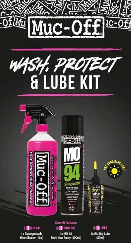 Ben je daarnaast op zoek naar een all round wonder spray? Zoek dan niet verder! Muc-Off MO-94 heeft het allemaal. Met de ongelofelijke PTFE formule om snel en effectief vocht te verwijderen, bewegende delen te smeren en een langblijvende beschermende laag op je fiets achter te laten. MO-94 voorkomt dat vuil zich gaat hechten en drijft overmatig water uit om corrosie en roest te voorkomen. MO-94 werkt niet alleen bij fietsen, motorfietsen en auto?s. Nee, het werkt op zo een beetje alles. Of je nou een piepende deur, een roestige slot of boutje hebt die je niet kan draaien, MO-94 is dan de oplossing.