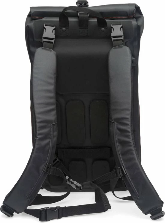 Waar je ook naar toe fietst, met deze Varo rugtas weet je zeker dat jouw spullen droog op de plaats van bestemming aankomen. De tas is gemaakt van 420D polyester en heeft geen gestikte naden en een roltop sluiting met een gesp. Daardoor is dit een tas voor de echte ?door-weer-en-wind-fietser?!