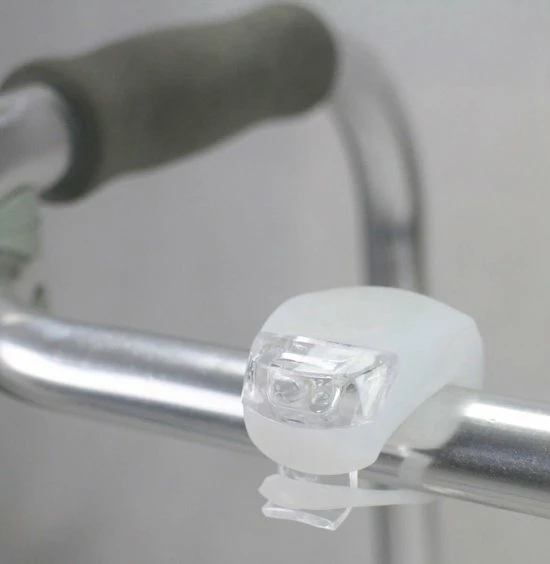 OBBOmed Set kwaliteit LED (3x) fietslampjes – passend op rollator – rolstoel – of natuurlijk fiets. Voorzien van sterke silicone voor gebruiksvriendelijk op- en af te halen, keer op keer.