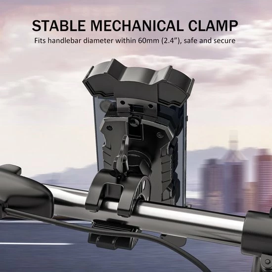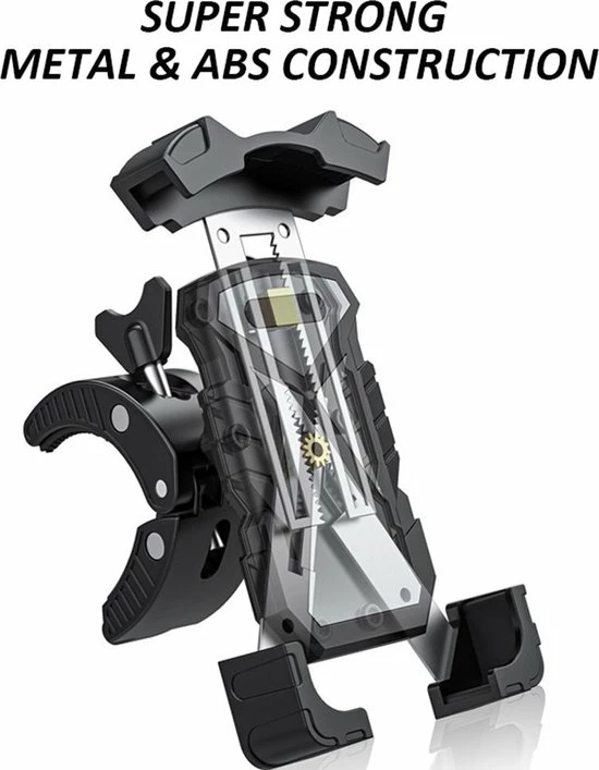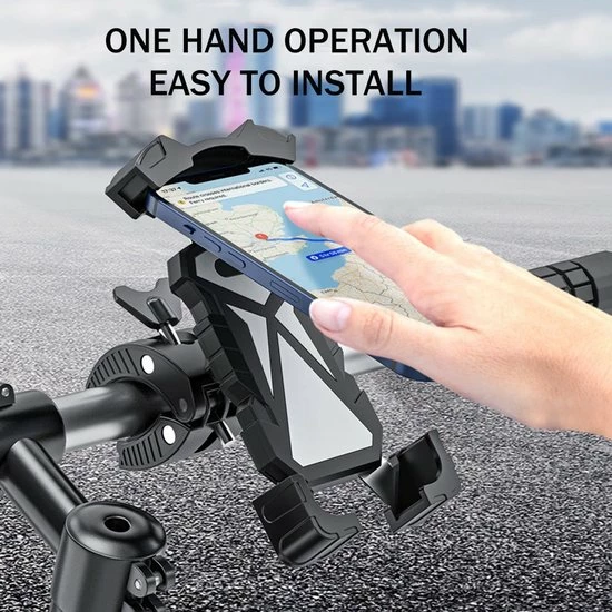 Deze mobiele telefoonhouder is supersterk en duurzaam. Het is verstelbaar voor verschillende telefoonformaten en eenvoudig te installeren op het stuur zonder gereedschap. Het is geschikt voor fietsen, scooters, motorfietsen, e-bikes, winkelwagens, hometrainers, kinderwagens, enz.