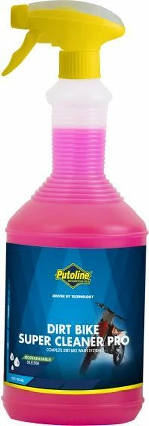 Dirt Bike Super Cleaner Pro is een hoog geconcentreerde, niet giftige, biologisch afbreekbare reiniger. De unieke, snel werkende formule verwijdert effici?nt modder, zand, teer, vet en ander vuil van kunststoffen en metalen oppervlakten. Dirt Bike SuperCleaner Pro wordt aanbevolen voor het reinigen van alle soorten Motorcross- en Enduro motorfietsen. Fosfaatvrij. Geeft geen vlekken op aluminium.