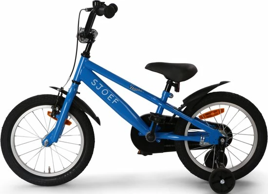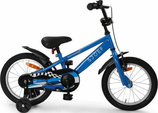 Deze fiets is uitgerust met zijwieltjes, zodat kinderen makkelijk en veilig kunnen leren fietsen.