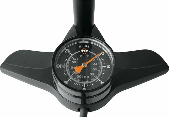 Geeft veel druk: De SKS AIRKOMPRESSOR 12.0 is een stabiele vloerpomp met een extra lange stalen buis voor veel volume per slag. Hij heeft een extra grote drukmeter en een MULTI VALVE-kop voor alle ventielen. Met deze vloerpomp kun je fietsbanden heel gemakkelijk oppompen tot een druk van 12 bar.