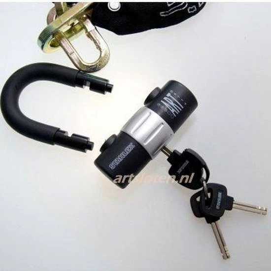 Ideaal om uw tweewieler veilig en gemakkelijk op slot te zetten. ART*** Geef dieven geen kans – ART goedgekeurd met 3 sterren. Zeer sterke en stevige uitvoering. Hoge kwaliteit. Als poort kettingslot of aanhangerslot ook bruikbaar