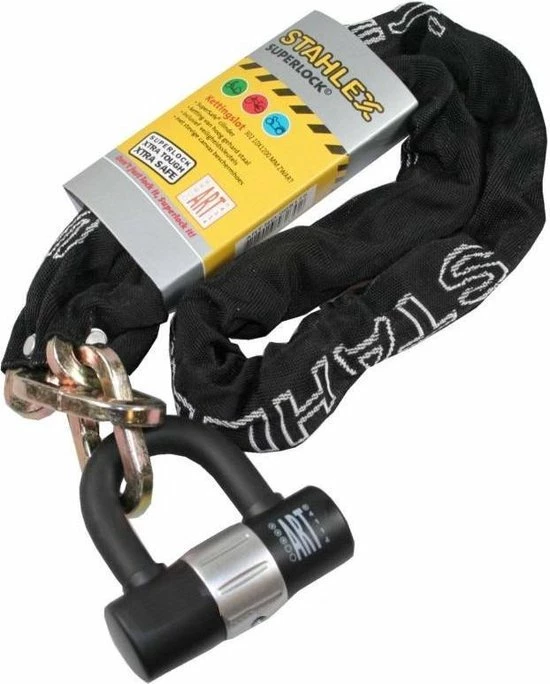 Stahlex kettingslot 302 Art*** 10X1200 mm van gehard staal. Stahlex slot categorie 3 met 3 sleutels.