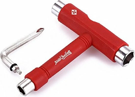 Een professionele T-tool schroevendraaier voor alle type Skateboards. Makkelijk mee te nemen, met 3 verschillende maten zodat het bij elke skateboard gebruikt kan worden. In een handomdraai de trucks en wielen van je zoons, dochters of eigen penny board, skateboard of longboard afstellen? Goed gereedschap is het halve werk!