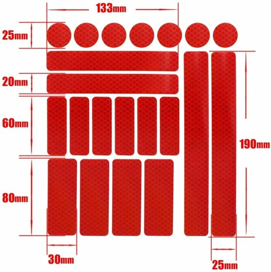De stickers zijn stevig, van pvc en lichten op wanneer er licht op schijnt.