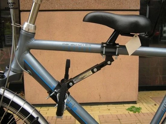 Zadel op Stang is een ontzettend handig concept. Een los zadel op de stang van de fiets, ideaal voor kinderen tot ongeveer 7-8 jaar. Een zadel voorop de stang is doorgaans een prima alternatief voor een fietsstoeltje, bijvoorbeeld als uw kind te zwaar wordt voor een voorzitje.